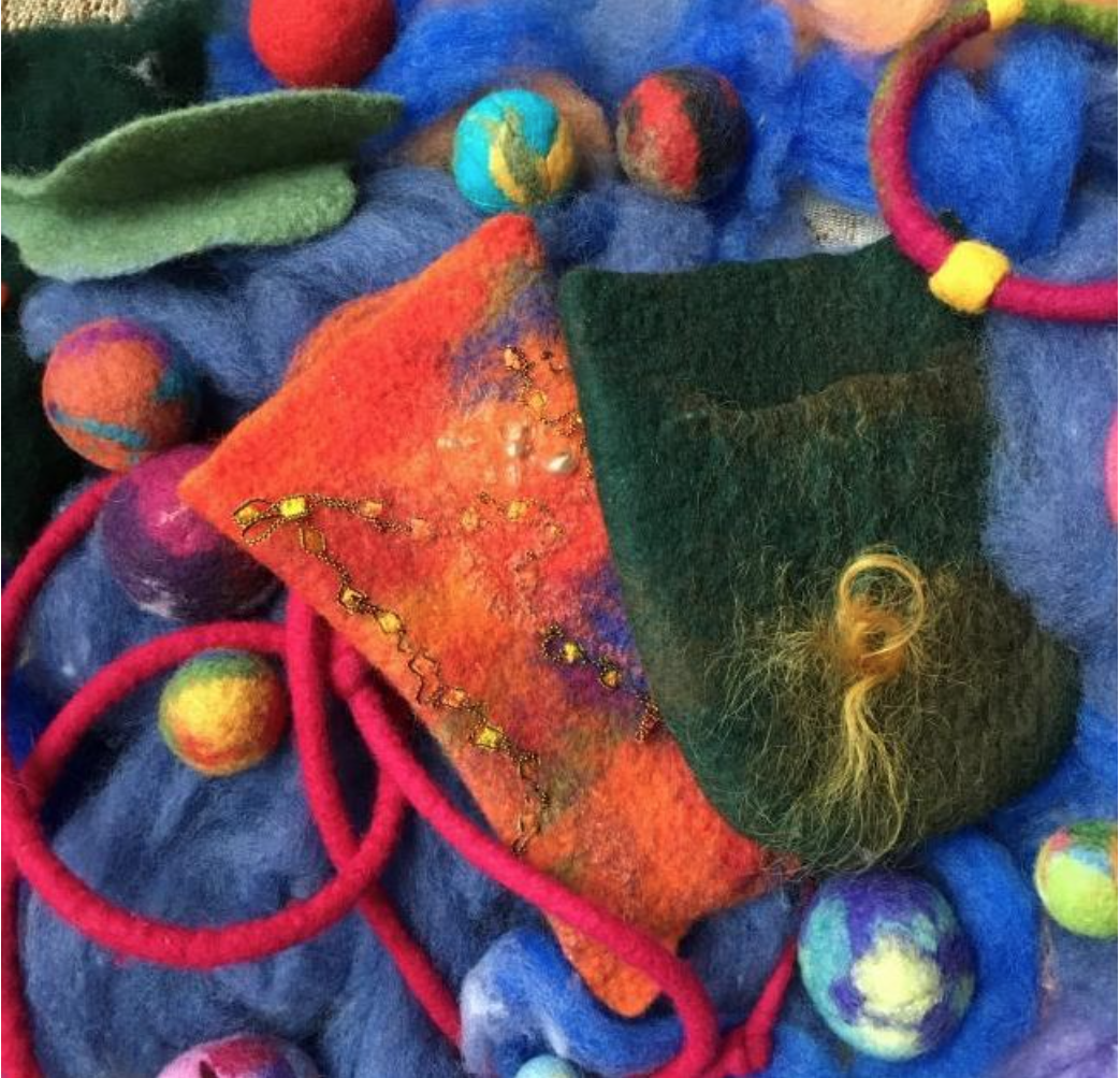 Join Lisa Rose and Gika Rector in an exploration of the magic that happens with richly dyed merino wool, soapy water, and hands-on manipulation. Loose wool fibers will be transformed into spheres, cording and a small bag. Techniques include two- and three-dimensional felt making, using a resist, creating a “seamless seam,” and shaping the felt.
